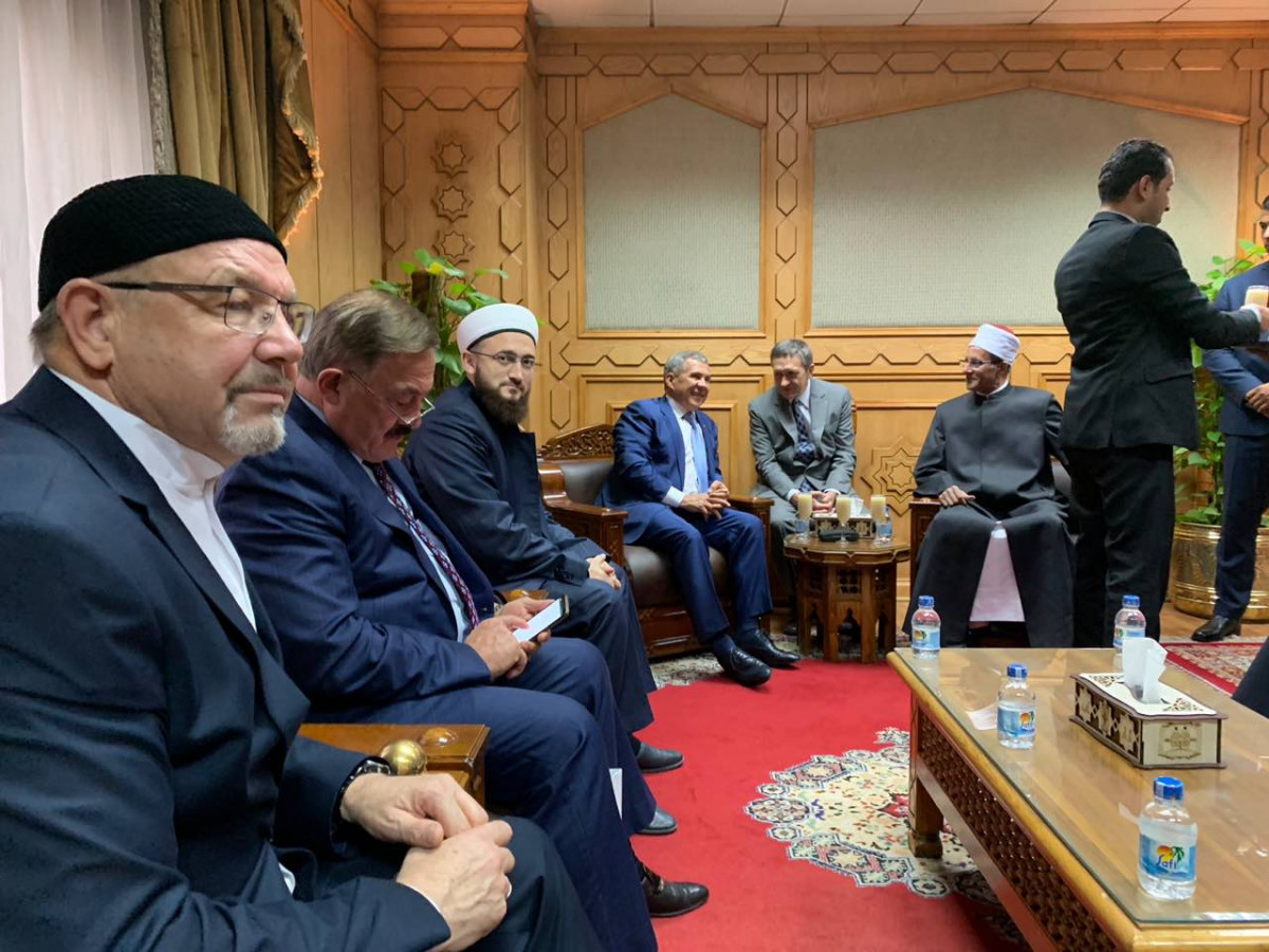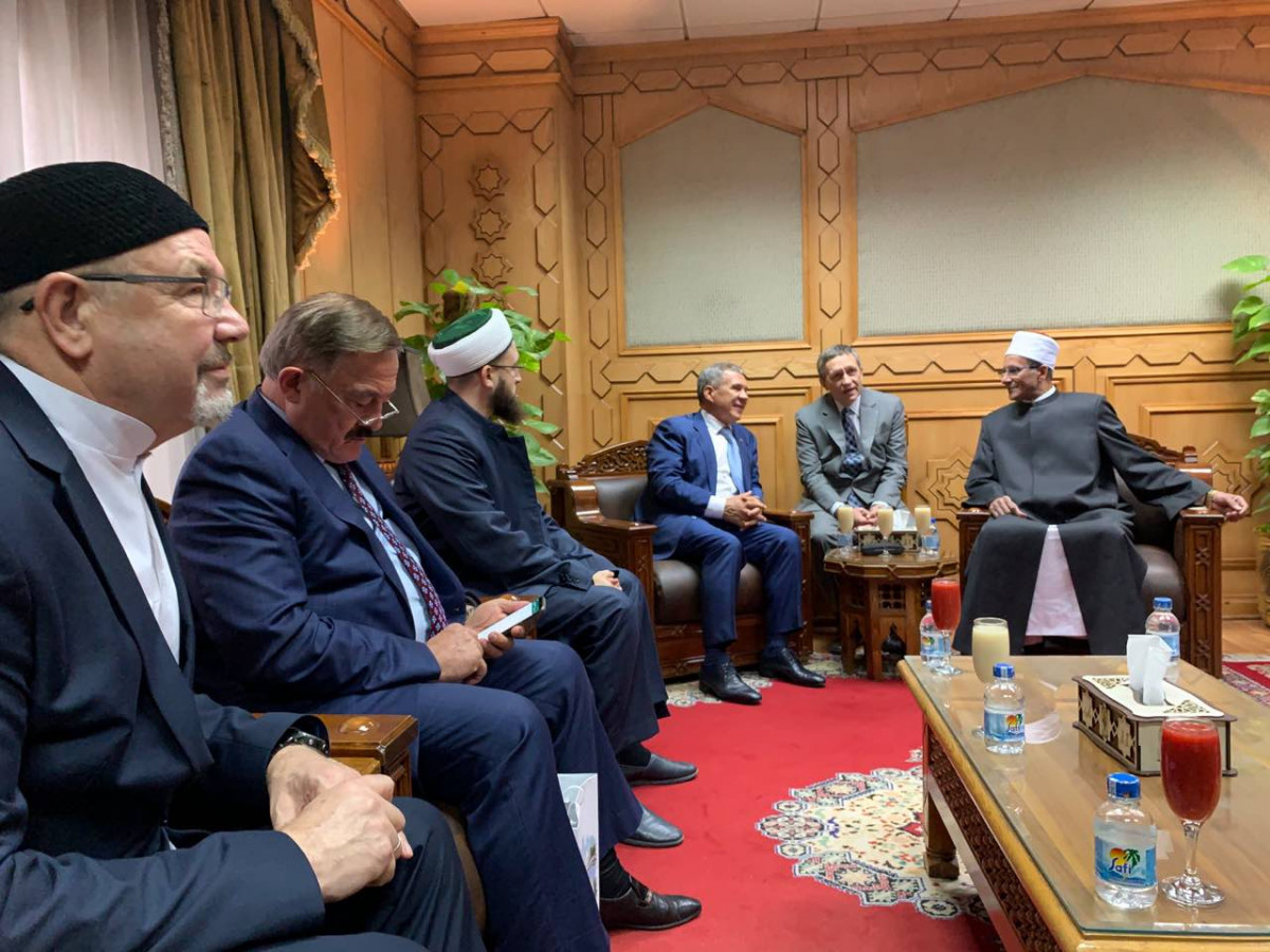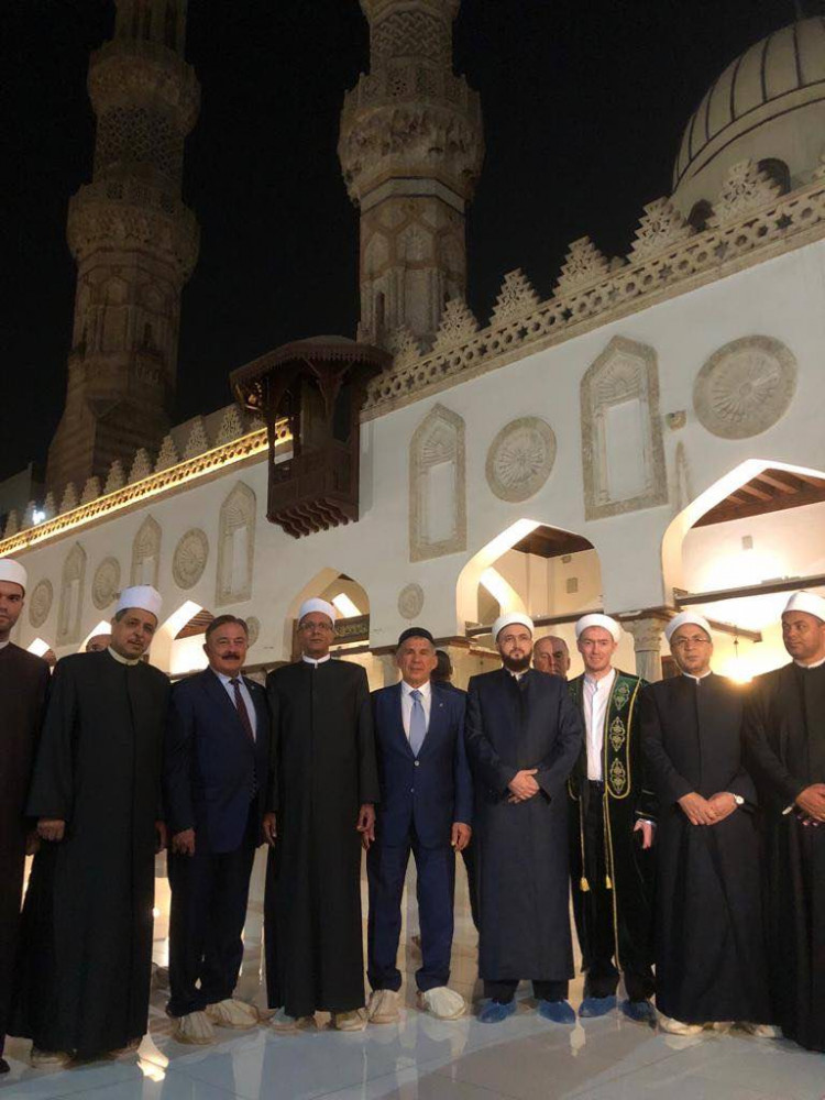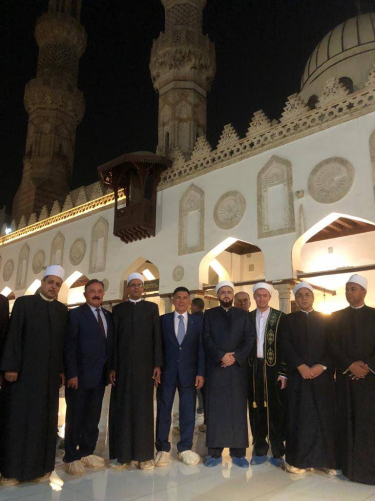 Рабочая поездка Муфтия Татарстана в Арабскую Республику Египет продолжается. В рамках визита в составе официальной делегации во главе с Президентом РТ Камиль хазрат Самигуллин посетил один из старейших учебных заведений мира - Университет Аль-Азхар. Здесь казанские гости, в числе которых были также ректор Болгарской исламской академии Рафик хазрат Мухаметшин, президент Болгарской исламской академии Камиль Исхаков и другие представители Духовного управления мусульман РТ и Российского исламского института, изучили его деятельность и встретились с руководством. В ходе встречи с шейхом Салихом Аббасом Рустам Нургалиевич Минниханов преподнес ему в качестве памятного подарка Священный Куръан, подготовленный и изданный Духовным управлением мусульман РТ. Издание в 2017 году впервые в России успешно прошло проверку Высшей комиссии при Министерстве вакфов Сирии и получило свидетельство о соответствии международным стандартам. Кроме того, во время беседы с руководством университета, президент подчеркнул его роль, как самого авторитетного международного центра учености и образования исламского мира, а также рассказал об истории обучения в Аль-Азхаре выдающихся татарских богословов дореволюционного периода и нынешнего времени и познакомил с ситуацией в религиозной сфере в Татарстане. На сегодняшний день в Татарстане функционируют около 1500 мечетей и преподавание ведется в 9 медресе, в Российском исламском институте и Болгарской исламской академии, открытие которой поддержал лично Президент России Владимир Путин. В Болгарской исламской академии обучается 120 человек (83 магистранта и 37 докторантов) из 17 регионов России и 7 стран. У Академии налажено взаимодействие с Университетом Аль-Азхар по линии Совета по исламскому образованию России и достигнута договоренность о принятии в Аль-Азхар абитуриентов из России только по направлению указанного Совета.