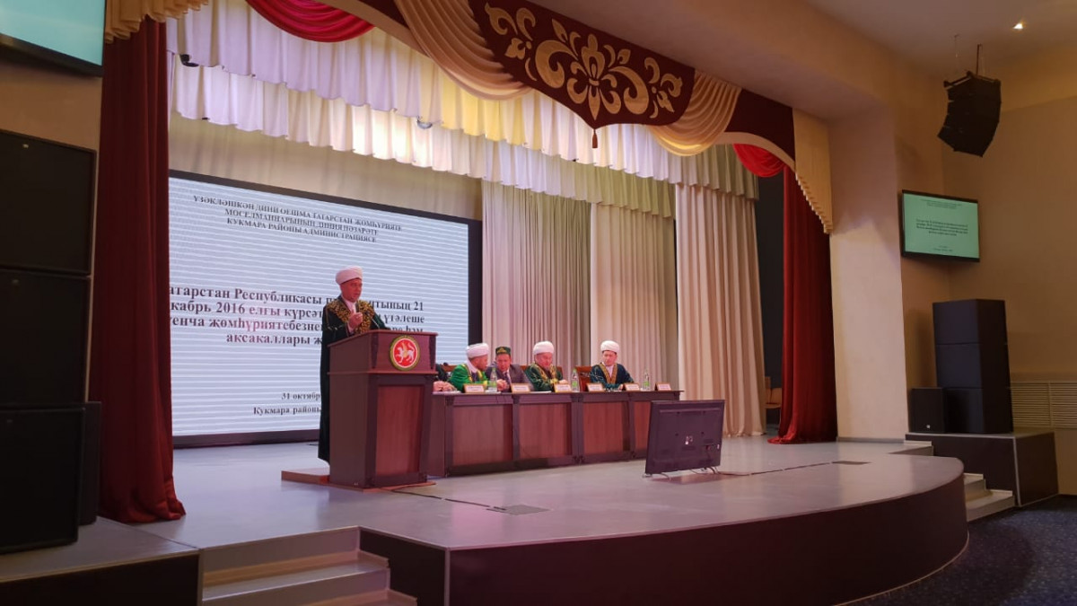Сегодня в Кукморском мухтасибате прошло выездное заседание Совета аксакалов Духовного управления мусульман РТ. В мероприятии приняли участие первый заместитель муфтия Татарстана Рустам хазрат Валиулин, заместитель муфтия по работе с мухтасибатами Мансур хазрат Джалялетдинов, главный казый Татарстана Джалиль хазрат Фазлыев, председатель Совета аксакалов ДУМ РТ Айрат хазрат Аюпов, а также мухтасибы и аксакалы со всей республики и представители местной власти.