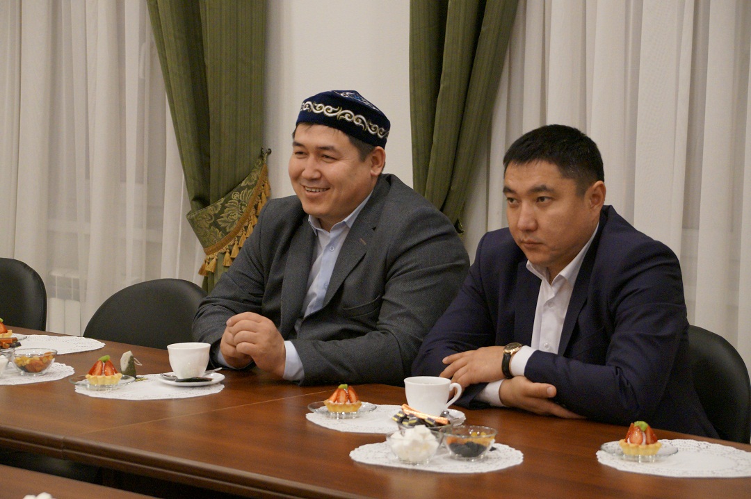 Уважаемых гостей встретили первый заместитель муфтия РТ Рустам хазрат Валиуллин и заместитель муфтия РТ по взаимодействию с официальными органами Ильфар хазрат Хасанов. В ходе беседы Ильфар хазрат рассказал о социально-ответственной, образовательной деятельности ДУМ РТ, а также поведал об успехах первого мусульманского телевидения «Хузур ТВ». В свою очередь имам ДУМК Ермек Касболатович поделился планами открытия музея Исламской культуры при Духовном культурном центре в Казахстане. Кроме того, духовные деятели выразили желание об организации совместных мероприятий и обмена опытом.
