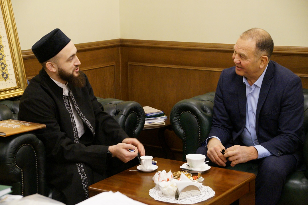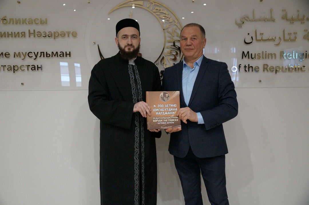 Сегодня муфтий Республики Татарстан Камиль хазрат Самигуллин провел встречу с исполнительным директором Федерации борьбы на поясах РТ, генеральным секретарём Международной Федерации борьбы на поясах Хабиром Хабибуллиным. В ходе встречи Хабир Сабирович выразил благодарность Духовному управлению мусульман РТ за участие в организации на высоком уровне Международного турнира по борьбе на поясах, посвященного 200-летию выдающегося татарского богослова и просветителя Шигабутдина Марджани, в спорткомплексе «Тулпар». В память об этом событии он подарил Камилю хазрату фотоальбом. Также в рамках проведения встречи обе стороны поделились планами по реализации инициатив в области развития спорта и здорового образа жизни.