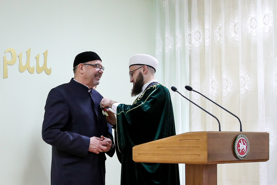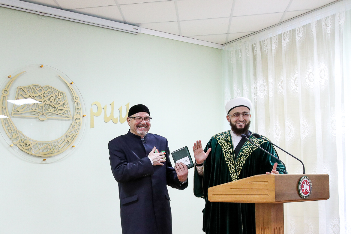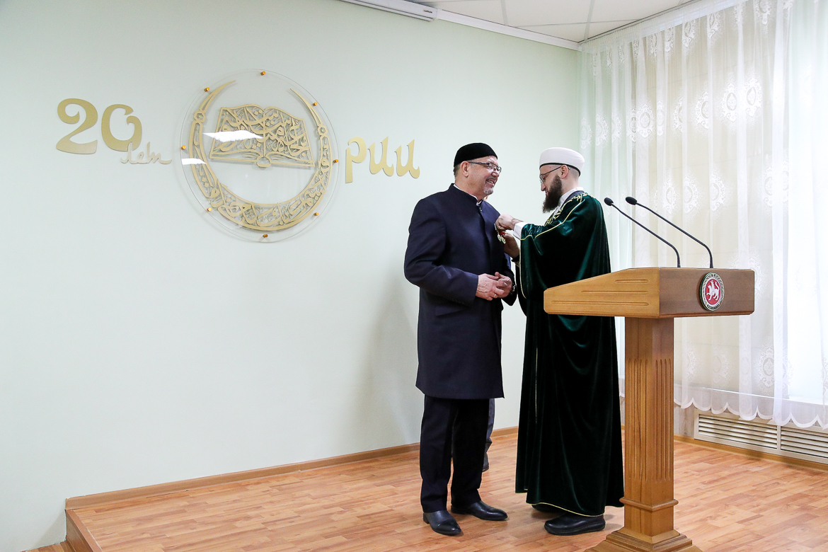 Хазрат поддержал мнение предыдущих докладчиков о неоценимом вкладе Рафика хазрата в развитие системы религиозного образования в Татарстане, которая сформировалась как четырехступенчатая и включает в себя примечетские курсы, медресе, Российский исламский институт и Болгарскую исламскую академию, за что и наградил его медалью ДУМ РТ «За вклад в развитие мусульманской уммы Татарстана». Награды ДУМ РТ удостоились также еще три специалиста института за добросовестный труд.