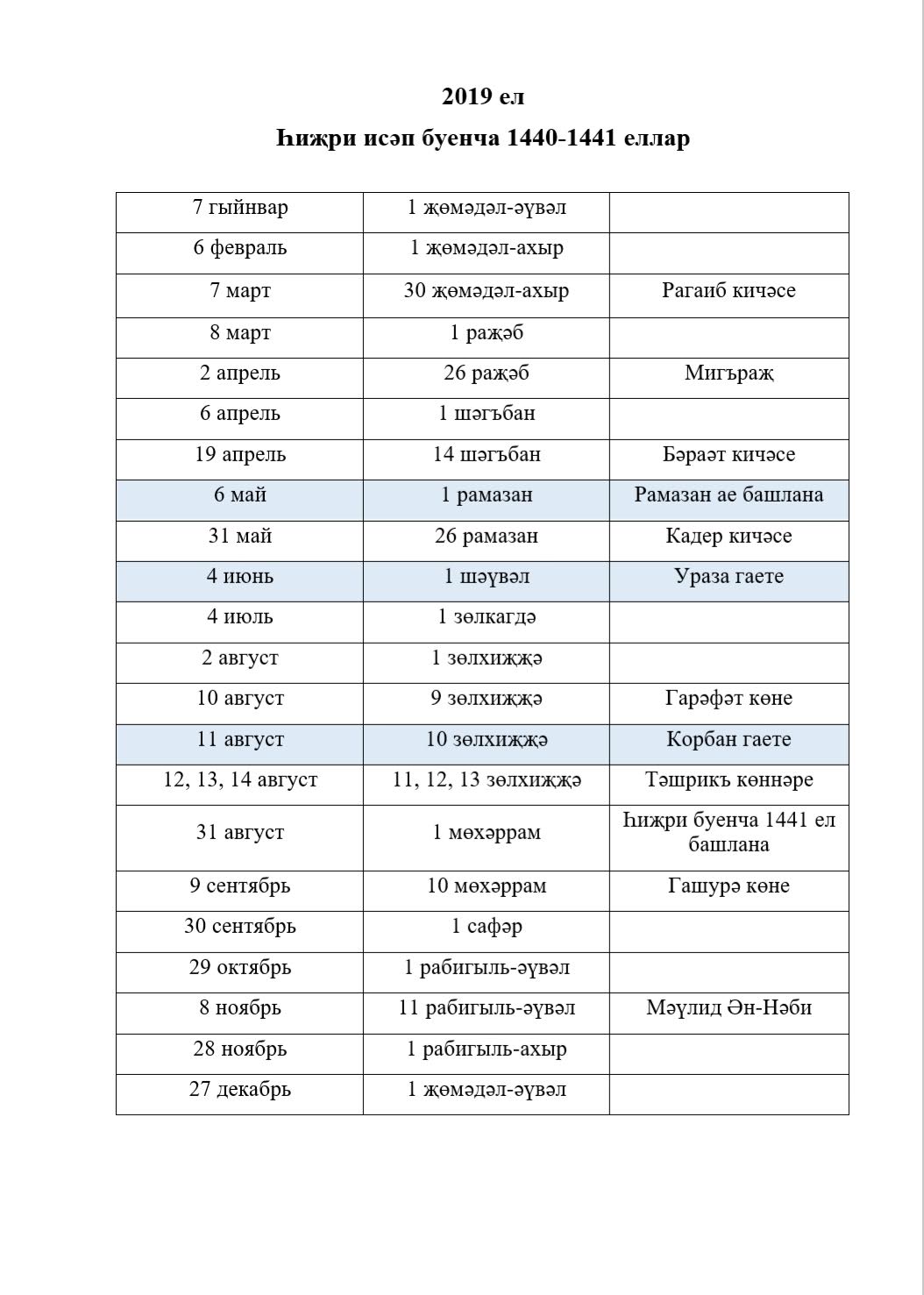 4 июня | 1 шавваль | Ураза-байрам |