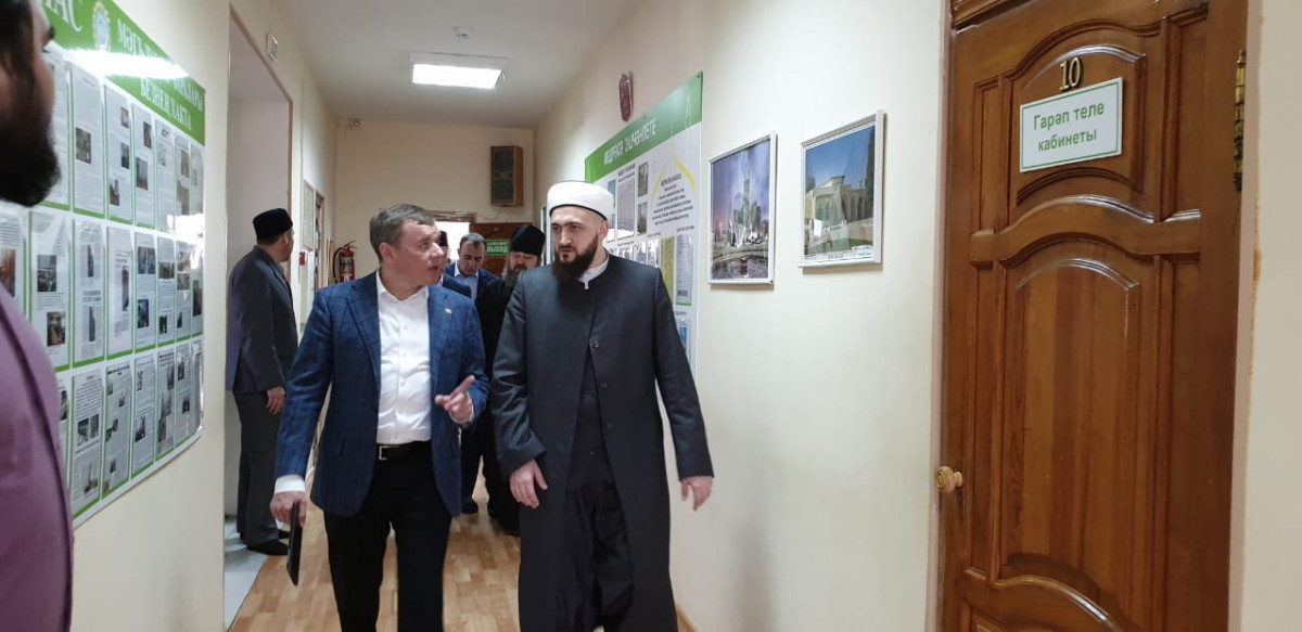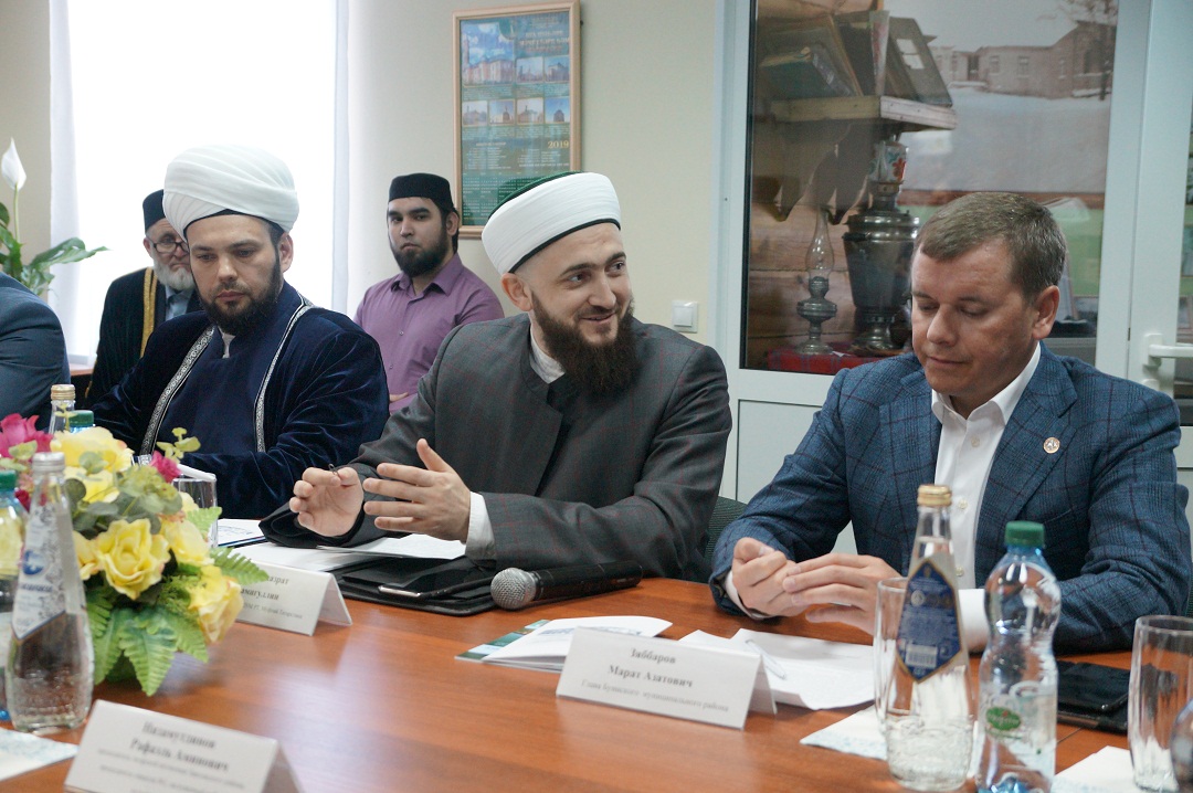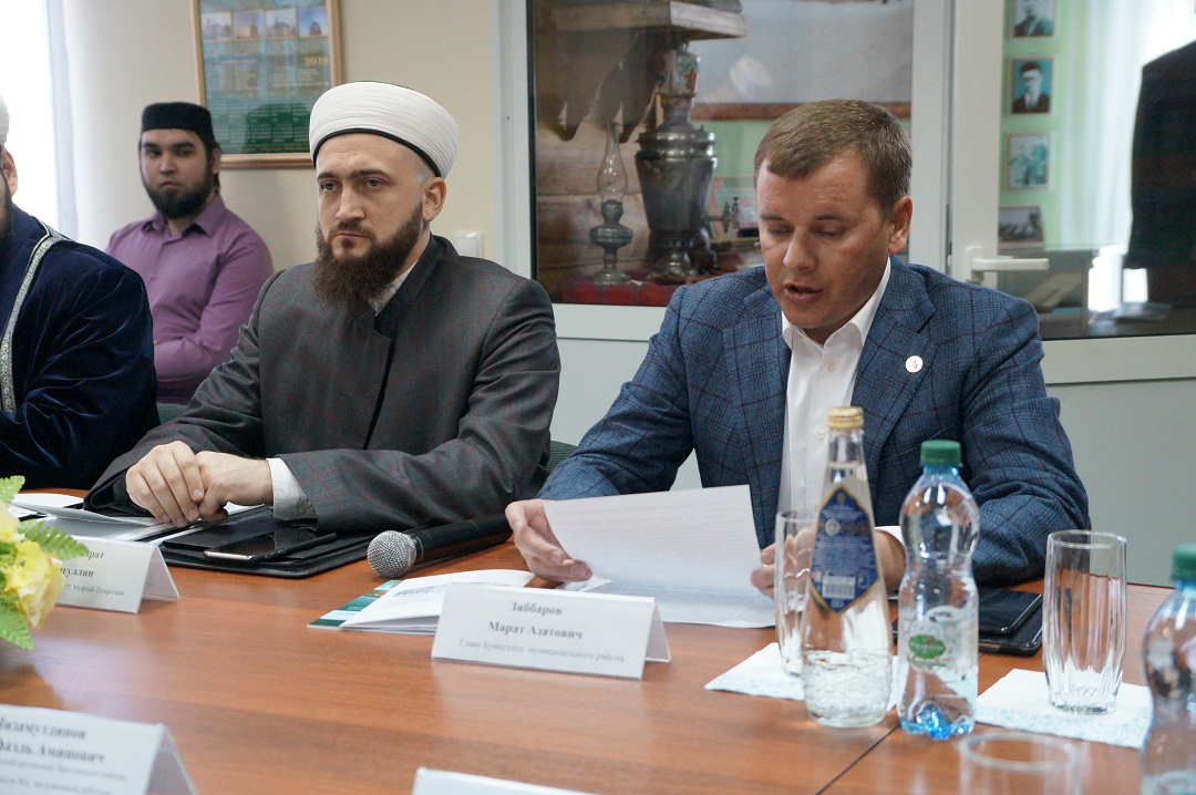 Муфтий Татарстана Камиль хазрат Самигуллин продолжает свои рабочие визиты в мухтасибаты республики. Сегодня, 28-го дня месяца Раджаб, он посетил Буинск. В рамках поездки муфтий провел рабочую встречу с главой района Маратом Зяббаровым. Во встрече также приняли участие имам-мухтасиб Буинского района Ильмир хазрат Хасанов, протоиерей Иоанн Ткачук и другие. В ходе беседы состоялось обсуждение ряда актуальных вопросов, связанных с религиозной ситуацией в районе, духовным воспитанием молодежи. Ильмир хазрат Хасанов поделился планами мухтасибата на ближайшие месяцы, в частности, предложениями по организации мероприятий в месяц Рамадан.