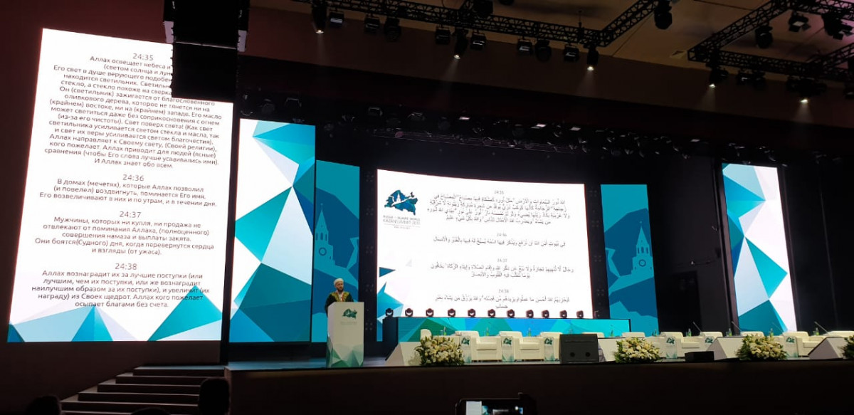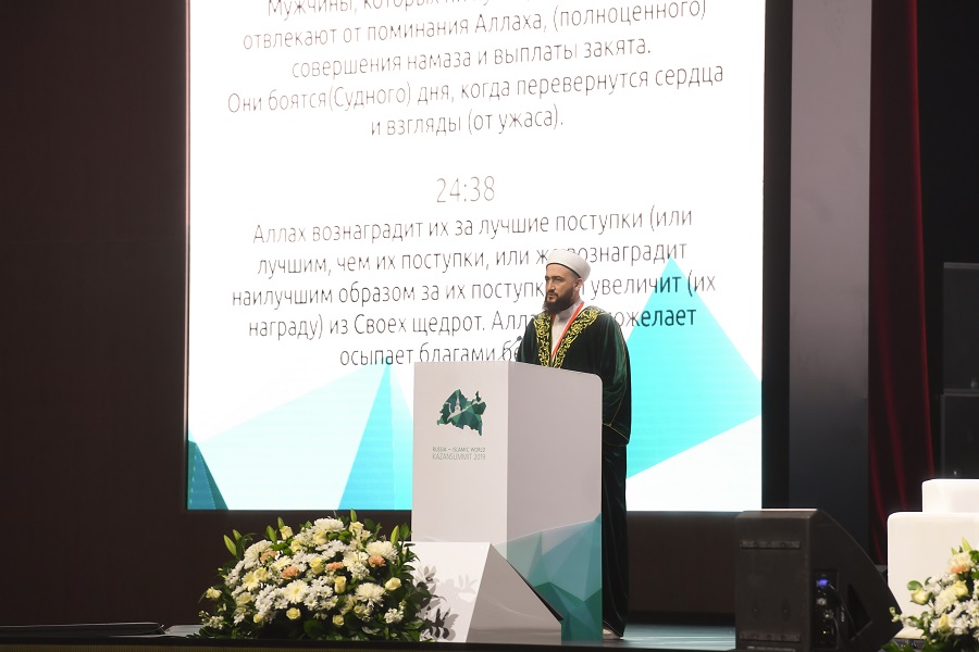 Сегодня, 20-го Ша’бана, в Казани состоялось пленарное заседание XI Международного экономического саммита «Россия - Исламский мир: KazanSummit 2019». Работу главной части саммита открыл муфтий Татарстана Камиль хазрат Самигуллин - он зачитал аяты Священного Куръана и дуа. Глава мусульман исполнил перед собравшимися 35-38 аяты суры «Ан–Нур» ("Свет"), в которых говорится следующее: