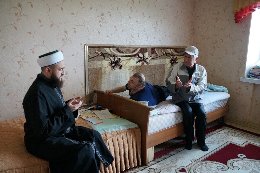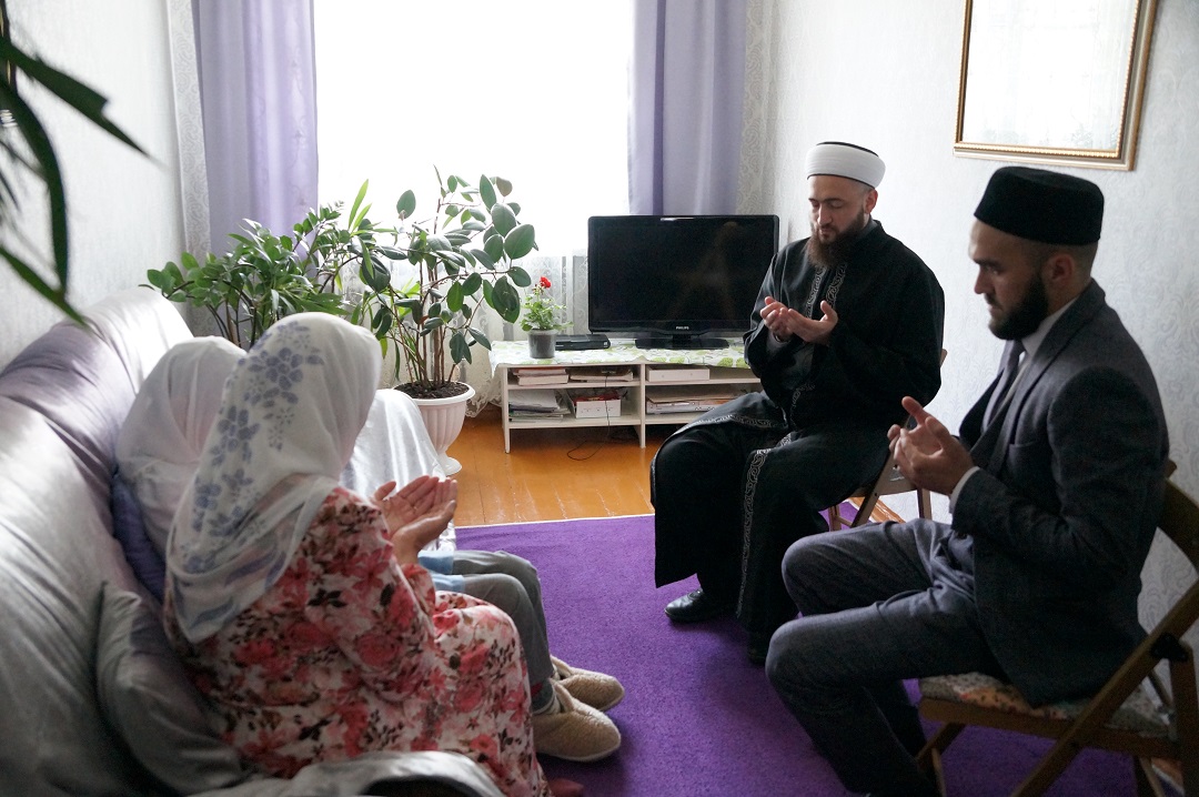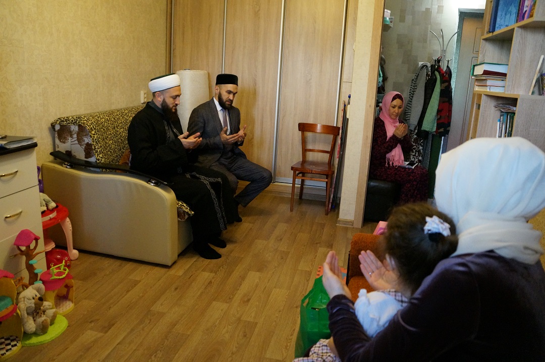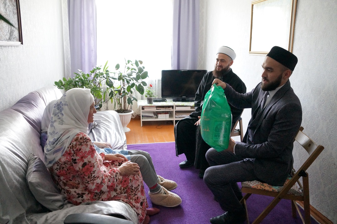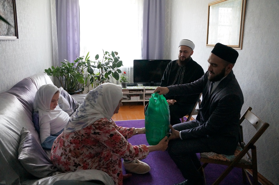 Сегодня, 18-го Рамазана, муфтий Татарстана Камиль хазрат Самигуллин вместе с Благотворительным фондом «Закят» ДУМ РТ навестил несколько малоимущих семей Казани. В каждый дом глава мусульман республики принес гостинцы – пакеты с продуктовыми наборами, которые включали в себя муку, сахар, подсолнечное масло, рис, чечевицу, гречку, макароны, финики и чай. Вместе с продовольственной помощью, он дал им свои наставления и прочитал дуа для облегчения их положения, за благополучие и здоровье, а также за избавление от физических страданий их тяжелобольных детей.
