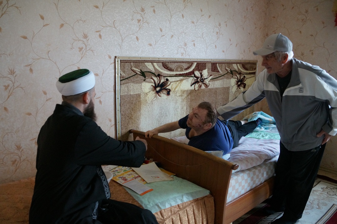 Например, Гаухария Гимранова – мать троих детей, вдова. У её младшей дочери Сайраны – ДЦП. Еща одна нуждающаяся подопечная семья БФ “Закят” – семья Батршиных воспитывает взрослого сына-инвалида. Рустем страдает ДЦП и полностью обездвижен. В прошлом году семья перенесла большую утрату – их младший сын трагически погиб. Дочь умерла несколько лет назад. Хусниярова Лейсан воспитывает двоих детей одна: дочери – 2,5 годика, а сын учится в школе. Семья живет на съемной квартире. Чтобы прокормить детей и оплачивать жилье, Лейсан с грудным ребенком на руках приходится разносить почту. Сегодня она продолжает работать почтальонкой. Вручив продуктовые наборы, хазрат и здесь совершил дуа.