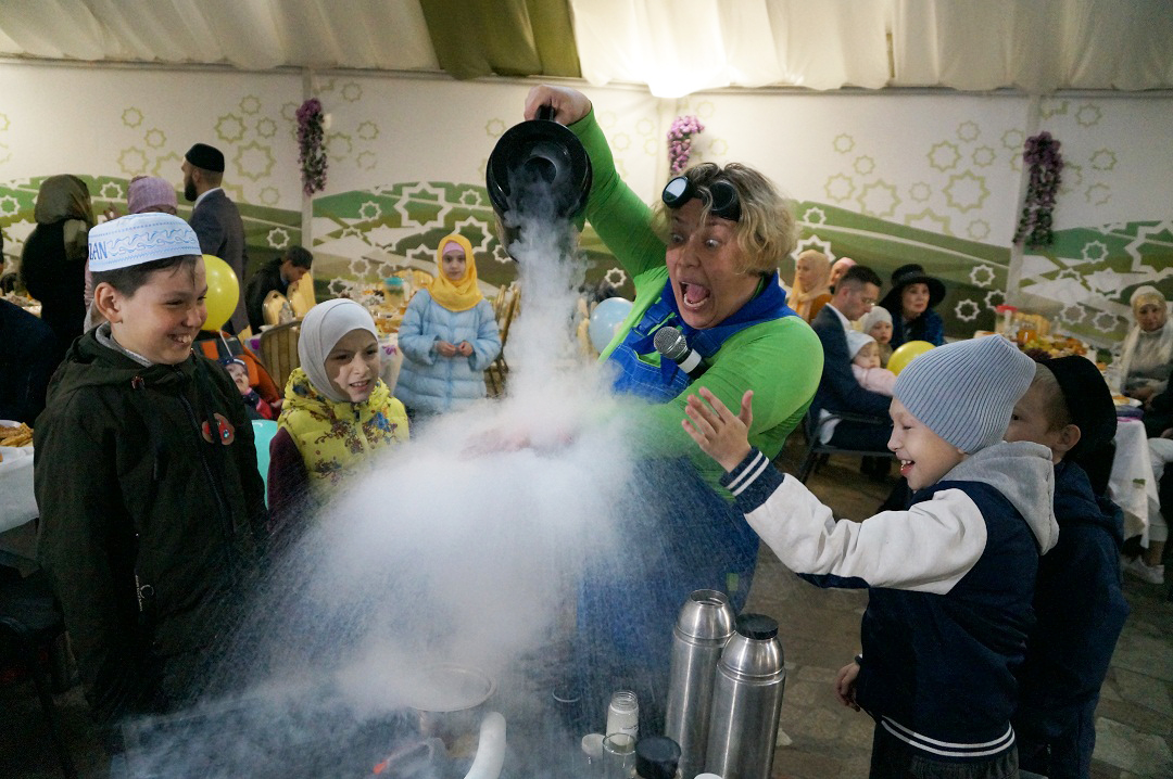 Программа ифтара началась с развлекательных мастер-классов по рисованию, рукоделию и химических опытов. Приглашенные мастера центра «Бэхет ачкычы» научили деток искусству изготовления броши, а в это время другие детки учились рисовать мечеть. Аниматоры раздавали праздничные воздушные шарики.