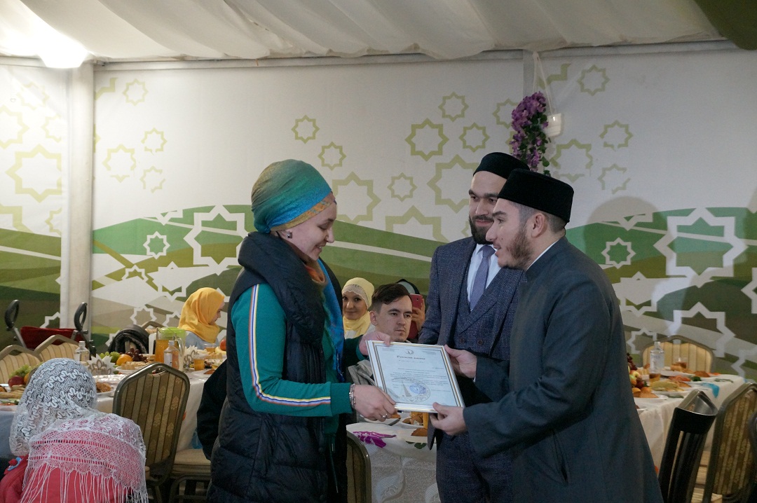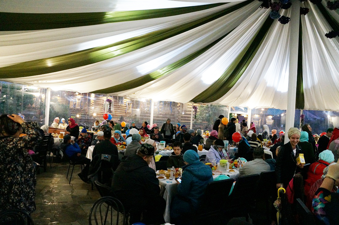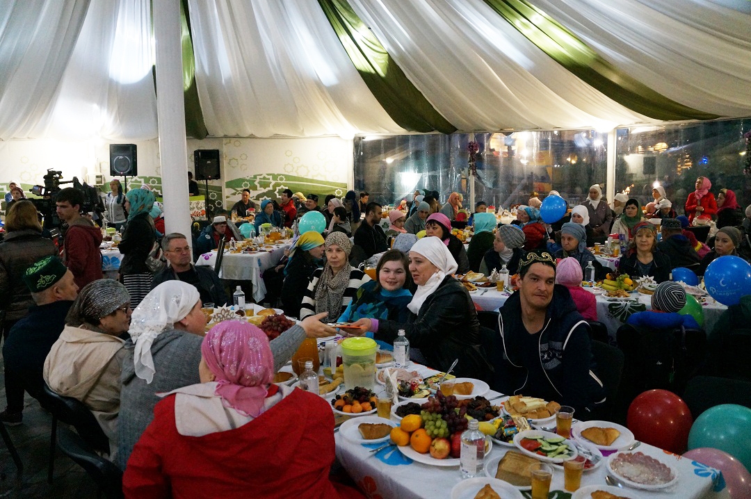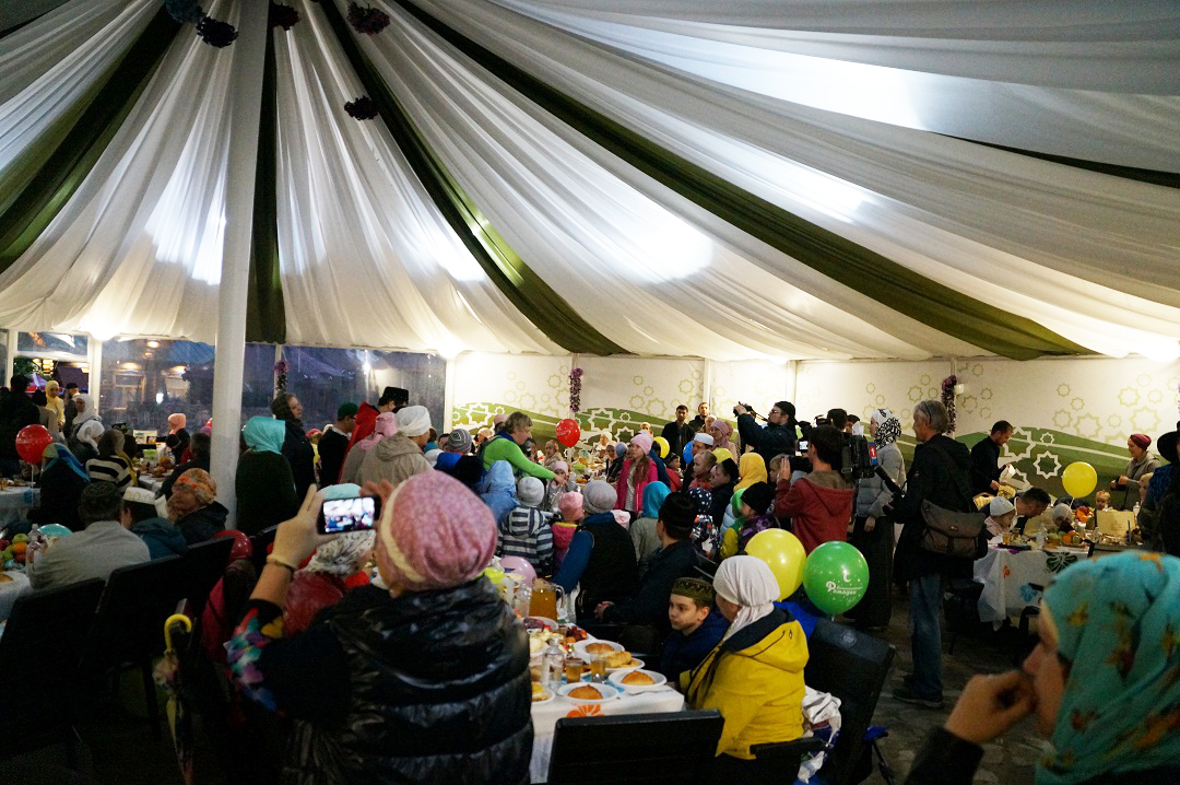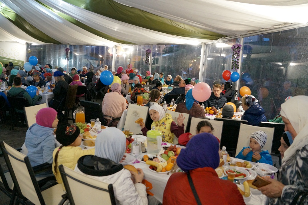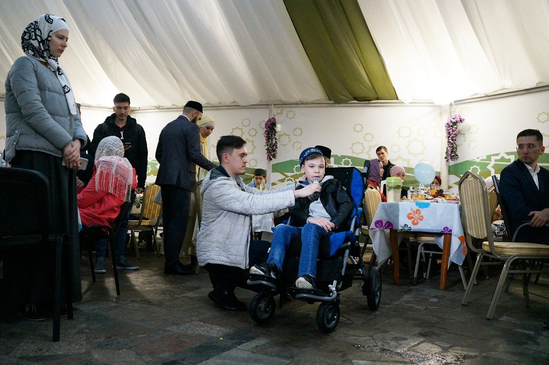 Вчера, 18-го месяца Рамадан, в национальном комплексе «Туган авылым» благотворительный фонд «Закят» ДУМ РТ провел ифтар для своих подопечных. В мероприятии, посвященном Священному месяцу Рамадан, приняло участие 250 человек. За вечерней трапезой собрались особенные детки с диагнозами ДЦП, аутизм, их родители, сироты, слабозрячие, незрячие, малоимущие и многодетные семьи. Среди гостей присутствовали заместитель муфтия по взаимодействию с официальными органами Ильфар хазрат Хасанов, президент «Фонда сохранения и развития творчества Альфии Авзаловой» Зульфия Нигмедзянова-Авзалова и др.