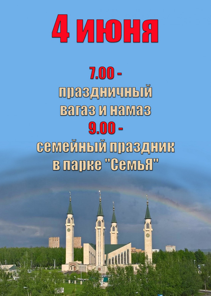 В Менделеевском мухтасибате в честь праздника Ураза-байрам в 09:00 пройдет Сабантуй. На сцене прочтут проповеди, а также аяты Священного Куръана. Организаторы проведут конкурсы по чтению азана и подвижные игры на спортивной площадке. Вечернее мероприятие пройдет в 16:00. Гости смогут отведать праздничный плов, а также у них будет возможность принять участие в викторине и выиграть призы.