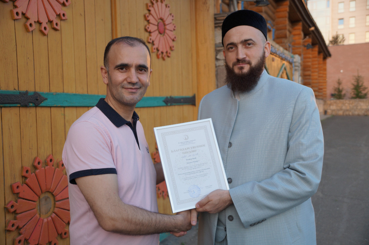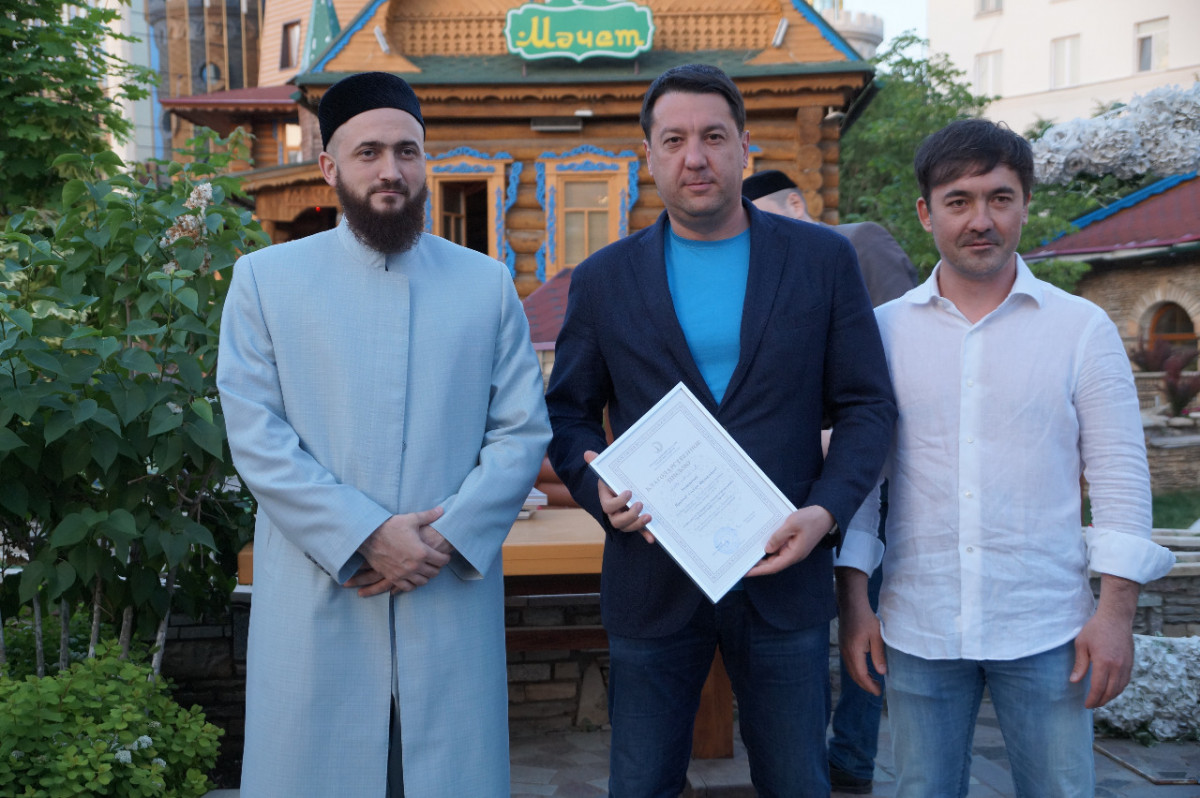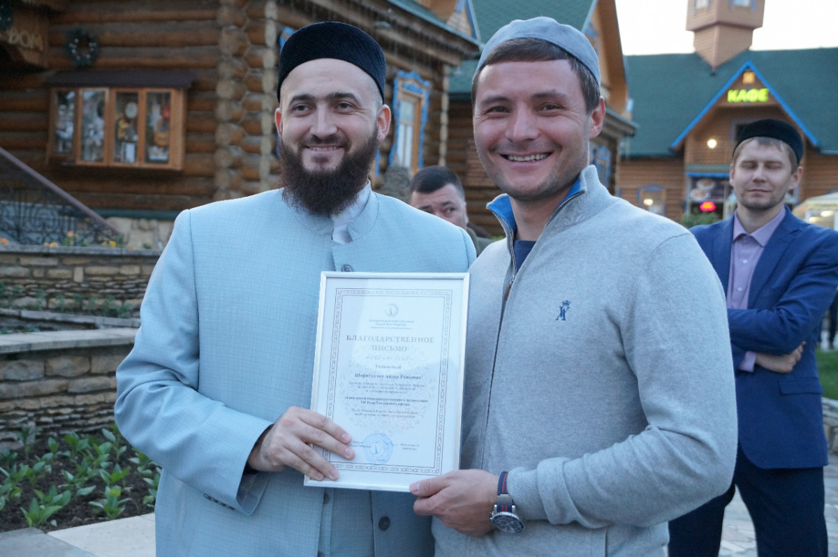 Муфтий Республики Татарстан Камиль хазрат Самигуллин принял участие в ифтаре для спонсоров VII Республиканского ифтара. На специальном маджлисе "авыз ачу", организованном Ассоциацией предпринимателей-мусульман РФ, собрались около 20 представителей малого и среднего бизнеса, внесших своей неоценимый вклад в проведение и организацию масштабного мероприятия. Камиль хазрат обратился к ним со словами искренней признательности за поддержку и содействие в этом крупнейшем социальном проекте Татарстана, выступил с содержательным вагазом и теплыми пожеланиями в адрес спонсоров. В завершение своей речи он вручил им Благодарственные письма.