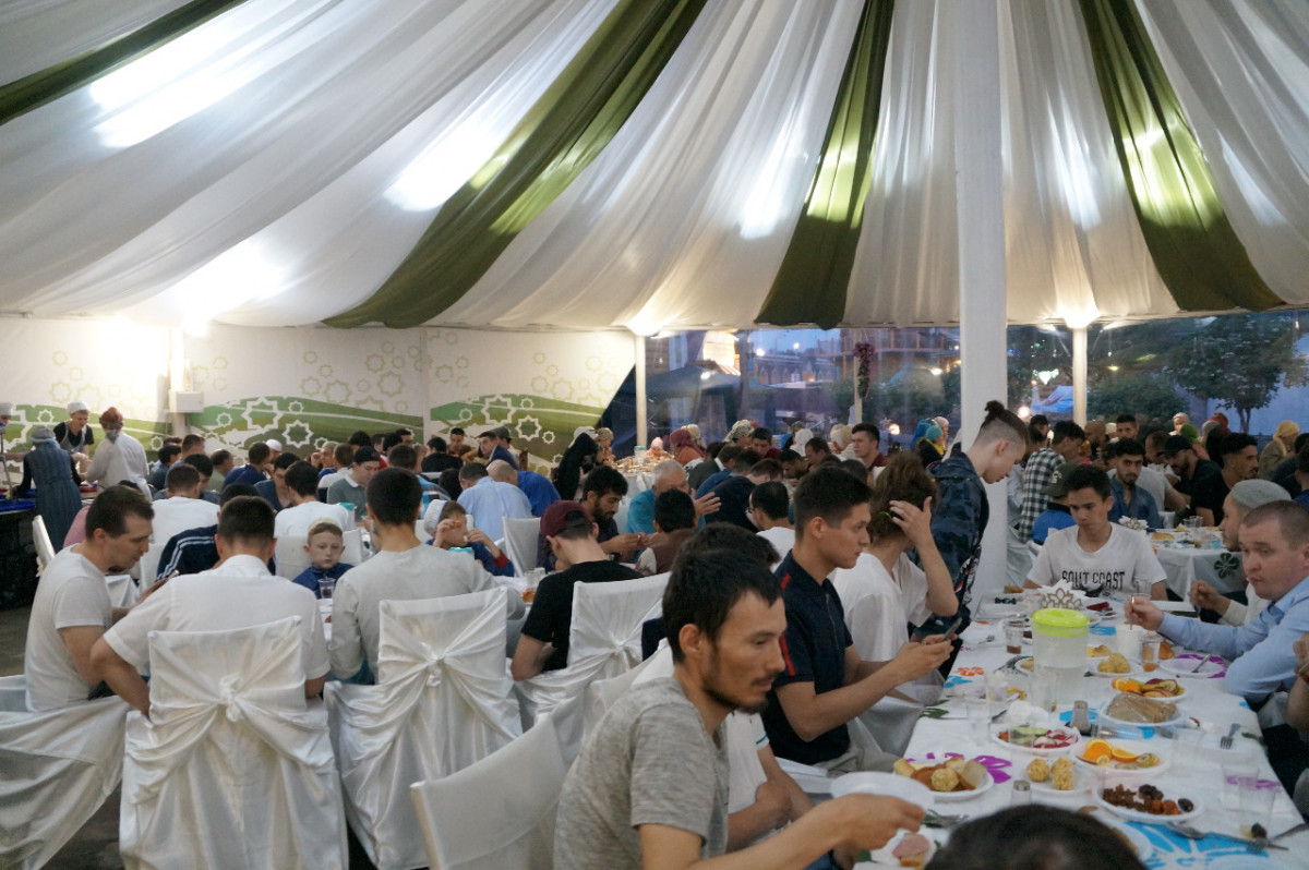 VII Республиканский ифтар прошел в Казани 20-го Рамазана, 25 мая. Он собрал рекордное количество участников – стол для разговения и грандиозный «намазлык» на футбольном поле для коллективного намаза были накрыты на 15 тысяч человек. Участие в одном из самых массовых вечеров разговения в России приняли руководители различного уровня, представители общественных и религиозных организаций, генеральные консулы Ирана, Турции и Казахстана в Казани, а также социально незащищенные слои населения: многодетные и малоимущие семьи, люди с ограниченными возможностями здоровья и другие. Кроме того, гостем ифтара стал Президент Республики Татарстан Рустам Минниханов. Благодаря спонсорской помощи, для разговения многотысячной армии постящихся было закуплено 1,5 тонны мяса (говядина), 1,3 тонны риса, 1,5 тонны овощей, 3 тонны фруктов, 1,5 тонны сухофруктов, 600 кг колбасных изделий, 15 000 батончиков чак-чака, 1 тонна печенья, а также вода и напитки. Меню ифтара включало в себя сухофрукты, фрукты, воду, сок, мясную нарезку, очпочмак, беккен, чак-чак, печенье.
