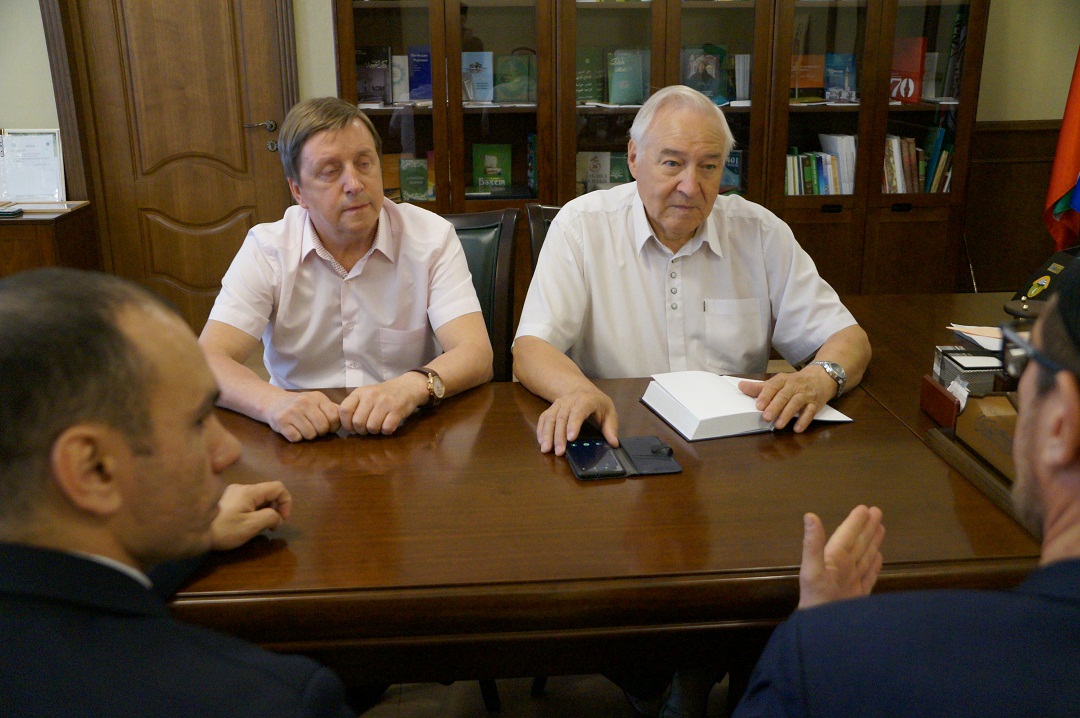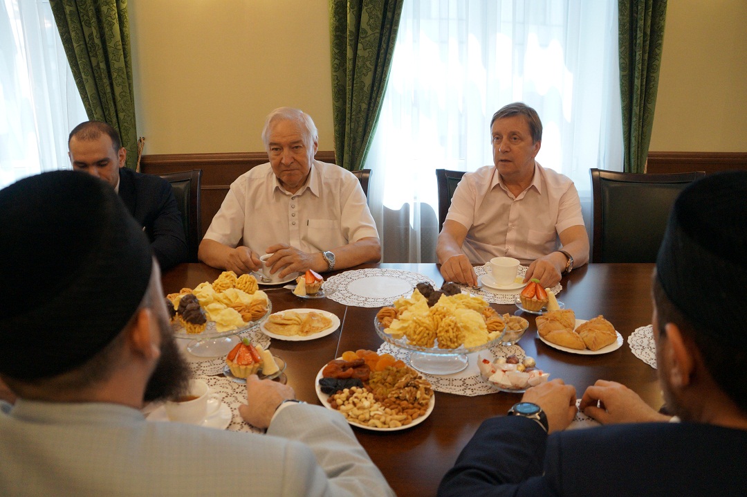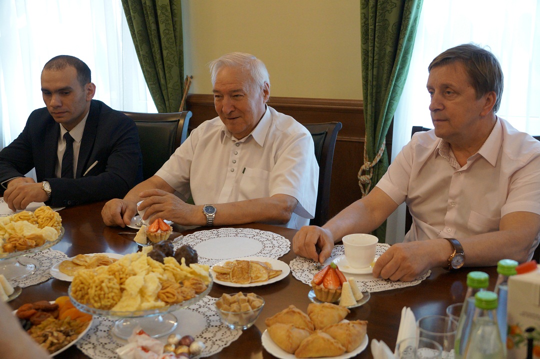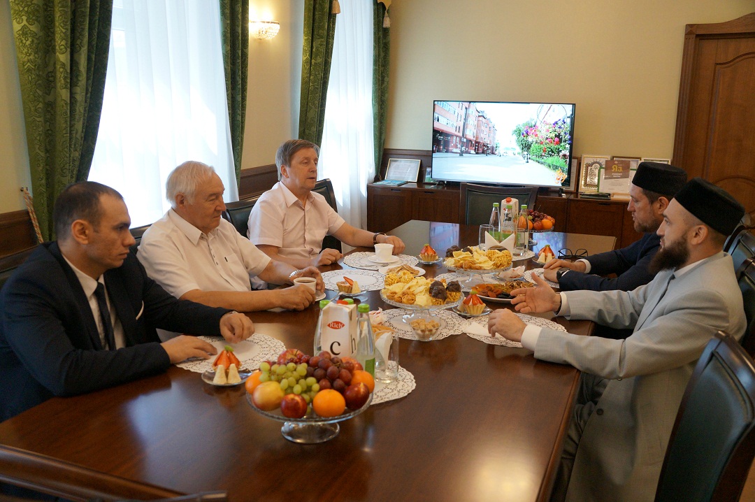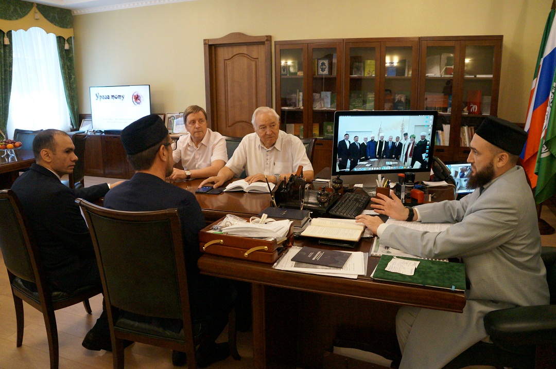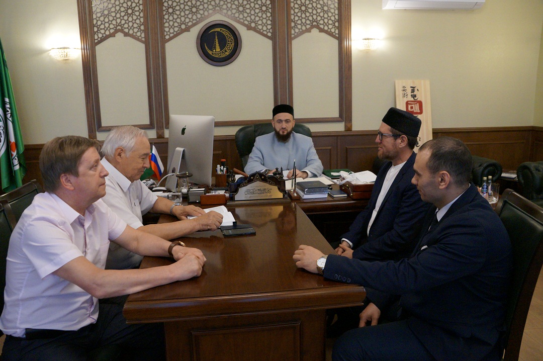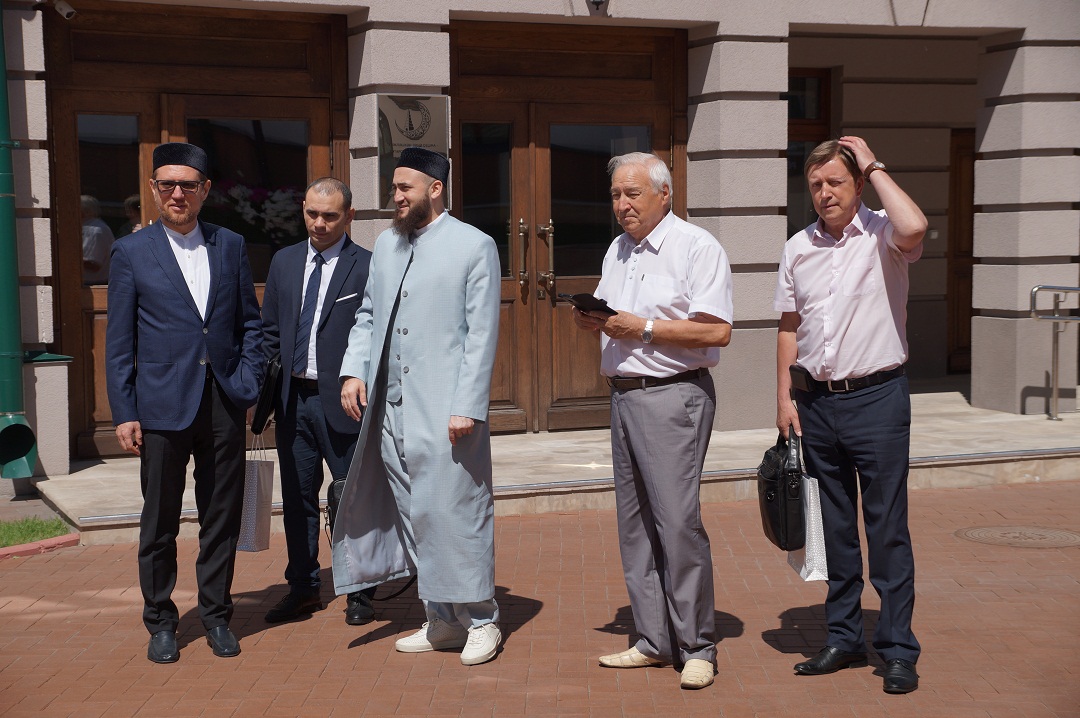 Сегодня в ДУМ РТ состоялась встреча муфтия Татарстана Камиля хазрата Самигуллина с представителями уголовно-исполнительной системы. В беседе приняли участие: доктор юридических наук, профессор, действительный государственный советник юстиции Российской Федерации 2 класса в отставке Салих Шамсунов; главный научный сотрудник ФКУ НИИ ФСИН России, генерал-лейтенант полиции в отставке, доктор юридических наук Николай Румянцев, кандидат юридических наук Эльдар Нарусланов, а также советник муфтия РТ по социальным вопросам Ильдар хазрат Баязитов.