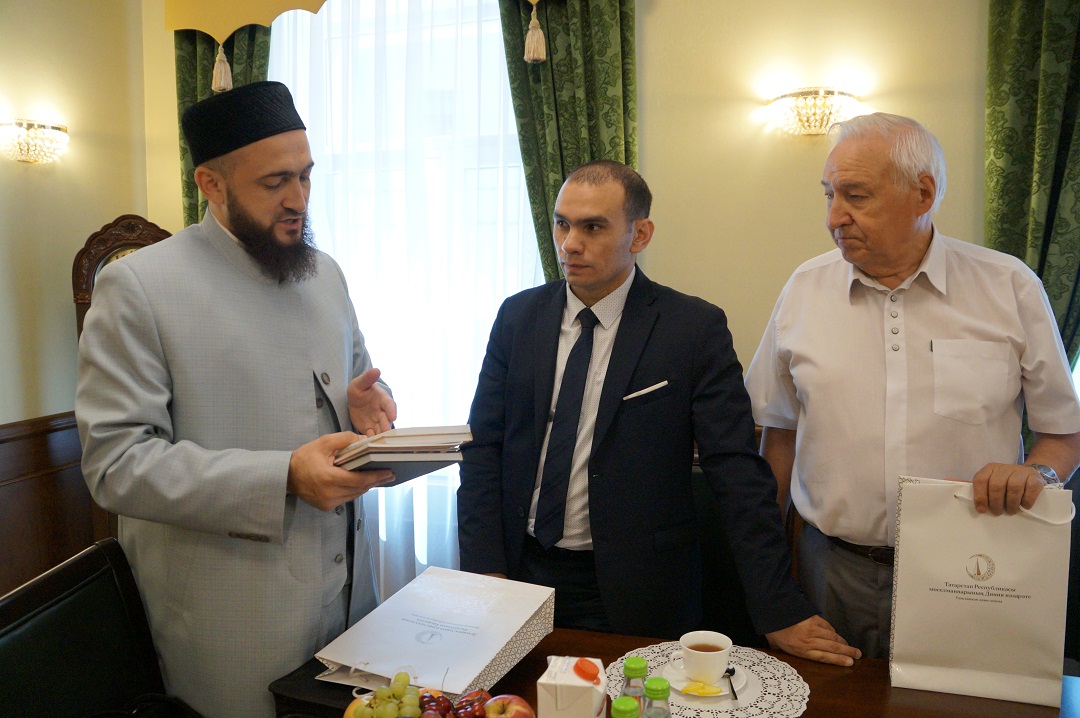 В конце встречи Камиль хазрат Самигуллин подарил каждому представителю научной интеллигенции книги ИД «Хузур».