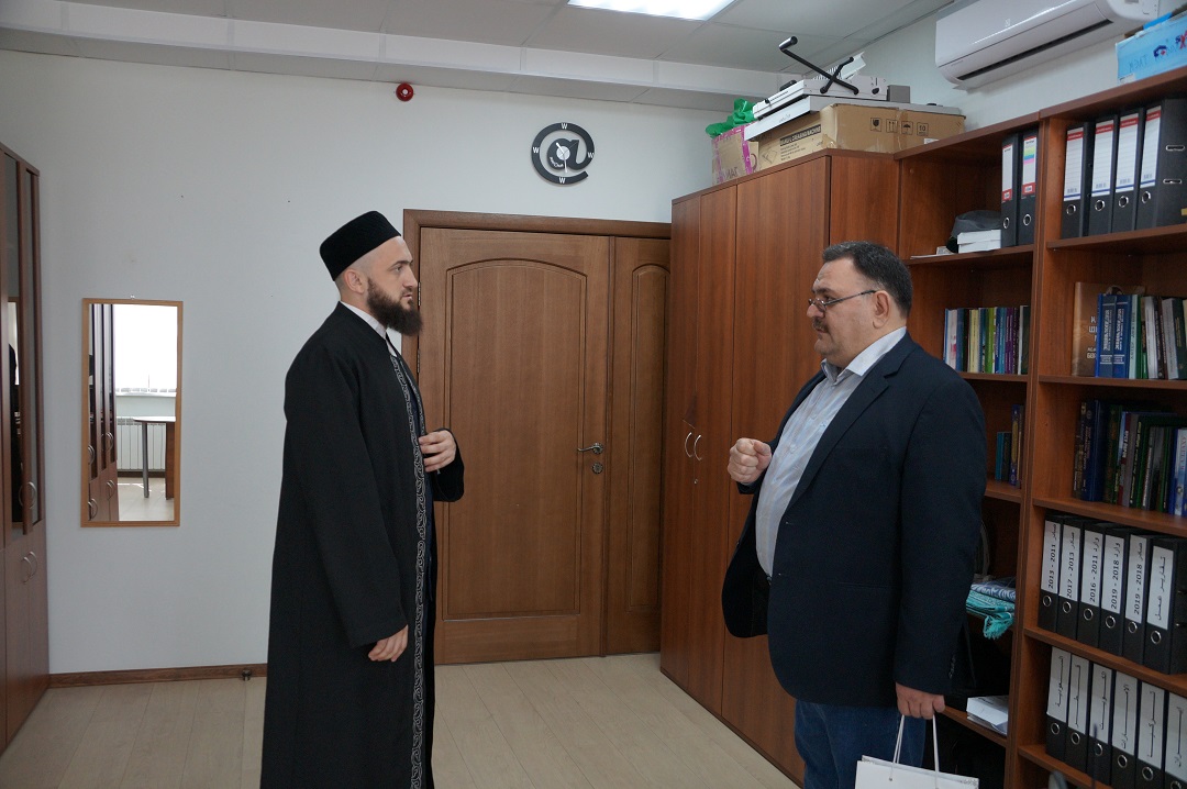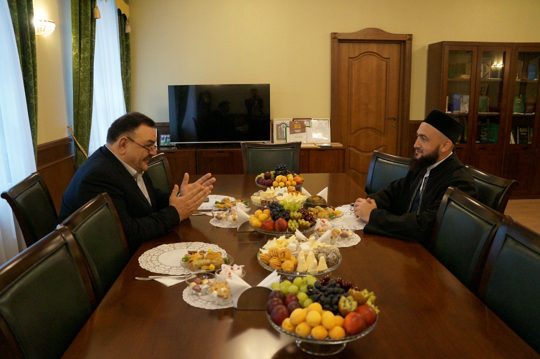 Муфтий хазрат поблагодарил гостя за предложение и в память о встрече подарил ему издания ИД "Хузур" ДУМ РТ.