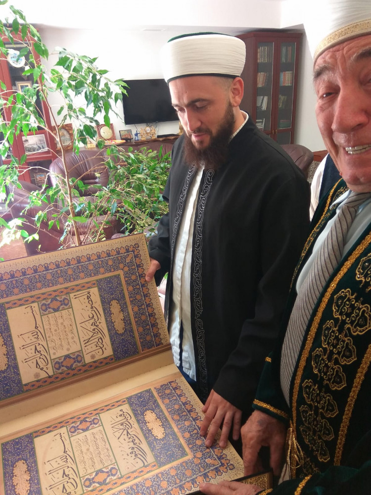 В память о встрече муфтий Татарстана подарил Абу-Бекиру хазрату Куръан, изданный ДУМ РТ.