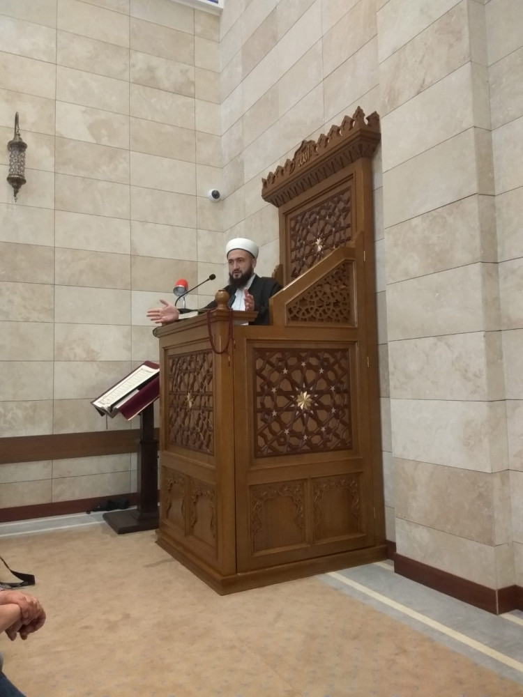 Сегодня, 23-го Зуль-ка’да, в рамках визита в Республику Беларусь муфтий Татарстана Камиль хазрат Самигуллин по просьбе муфтия Абу-Бекира хазрата Шабановича в Соборной мечети Минска прочитал лекцию, обратился к единоверцам с проповедью и провел пятничный намаз.