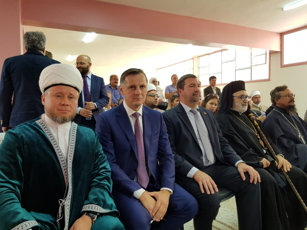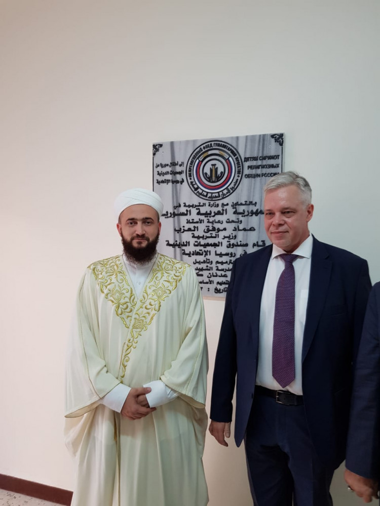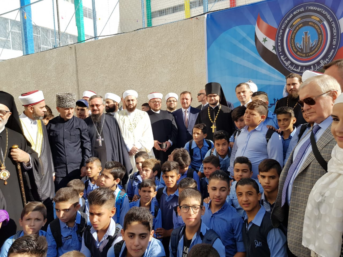 В официальной церемонии открытия школы приняли участие представители российской делегации и религиозных организаций Сирии, а также СМИ. В состав российской делегации вошли ответственный секретарь Совета по взаимодействию с религиозными объединениями при Президенте РФ Сергей Алексеевич Мельников, муфтий Татарстана Камиль хазрат Самигуллин, муфтий Духовного собрания мусульман России Альбир хазрат Крганов, секретарь отдела внешних церковных связей Московского патриархата отец Стефан, а также представители Российского посольства и консульства и другие.