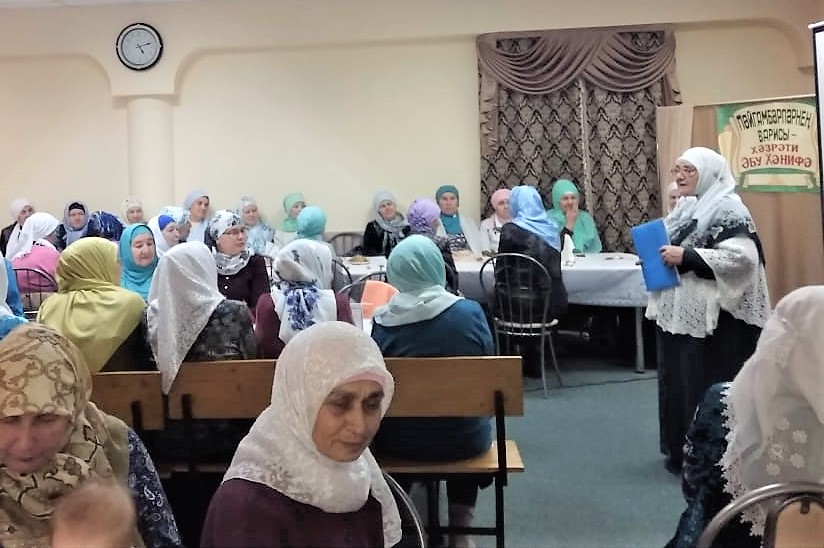 В начале к гостям с приветственным словом обратилась завуч отдела женского обучения мечети «Нур» Фанзия Ахметшина.  В своей речи она напомнила о важности следования мазхабу, ценностях традиционного Ислама, которые несет в себе знание имама Абу Ханифы.