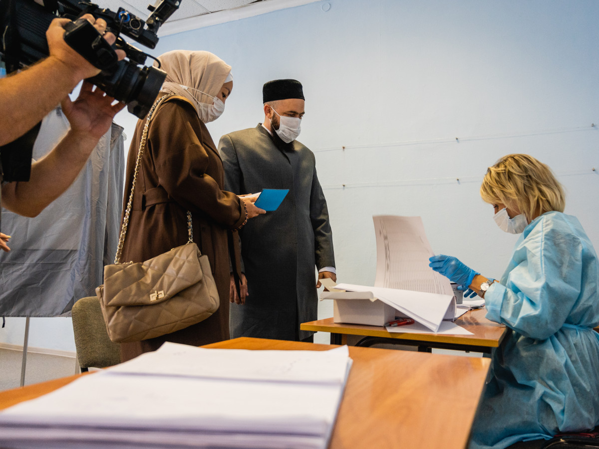 Cегодня, в 25-ый день месяца Мухаррам (13 сентября), в Татарстане - выборы Президента республики. Вместе с татарстанцами на них проголосовал и глава мусульман, муфтий Камиль хазрат Самигуллин. Для этого он утром посетил избирательный участок 47, расположенный в школе номер 12 по адресу ул. Ш.Марджани, 38.
