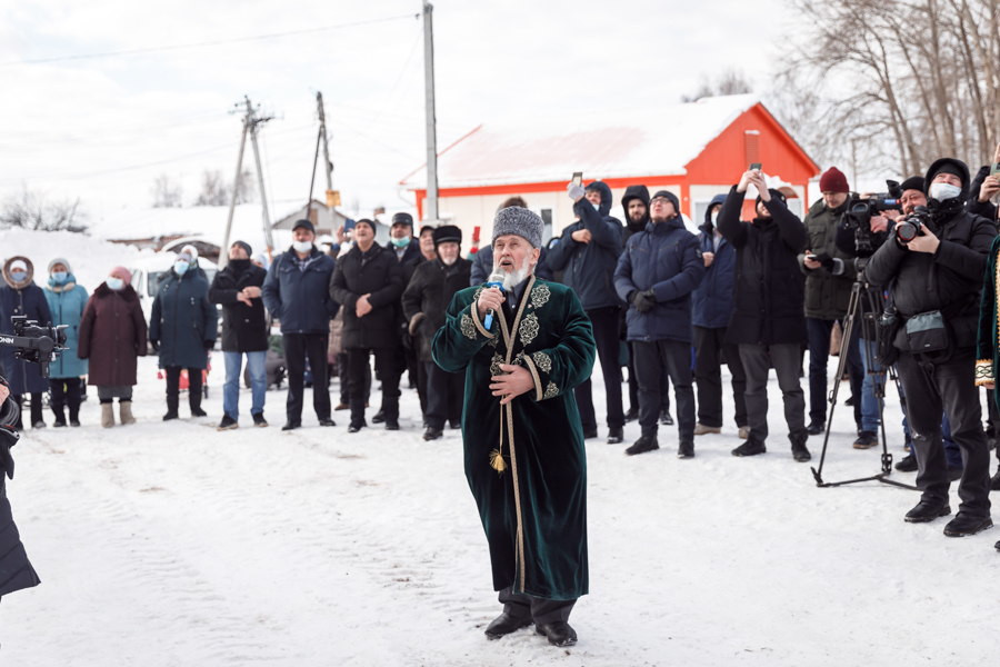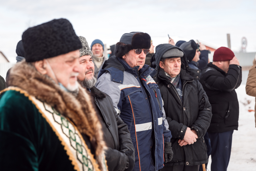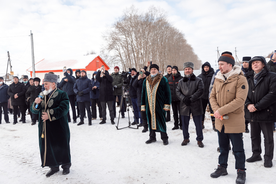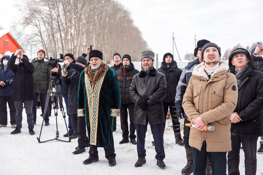 В церемонии установки полумесяца принияли участие председатель Совета аксакалов ДУМ РТ Айрат хазрат Аюпов, казый Северо-Западного региона Татарстана Габдулхамид хазрат Зиннатуллин, представители районной администрации, мухтасибата, спонсоры, строители и др. Казый Северо-Западного региона Татарстана Габдулхамид хазрат Зиннатуллин прочитал аяты из Священного Куръана, рассказал вагаз. Затем под его руководством на минарет мечети был установлен полумесяц.
