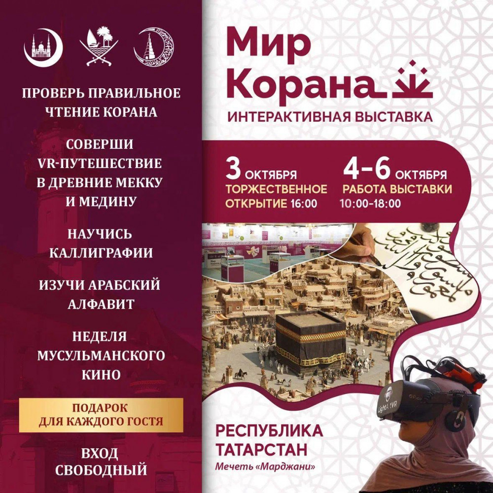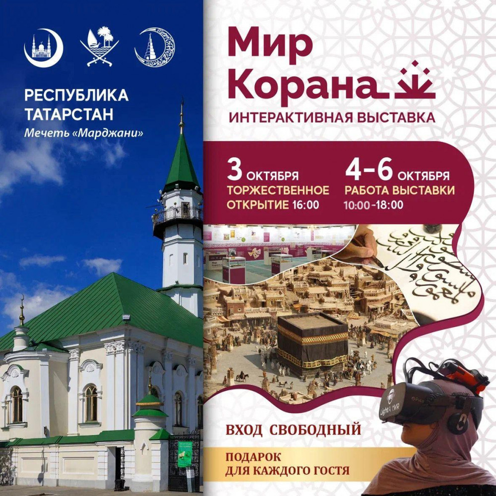 В 11-й день месяца рабиуль-ахир (3 октября), в мечети Марджани г. Казани состоится торжественное открытие Российско-катарской интерактивной выставки «Мир Корана». В ней примут участие Муфтий Республики Татарстан Камиль Самигуллин, заместитель председателя ДУМ РФ, Муфтий Рушан Аббясов, представители Министерства вакуфов и исламских дел Государства Катар, также Правительства Республики и города, Всемирного конгресса татар, общественные деятели и деятели культуры, священнослужители традиционных религий России.